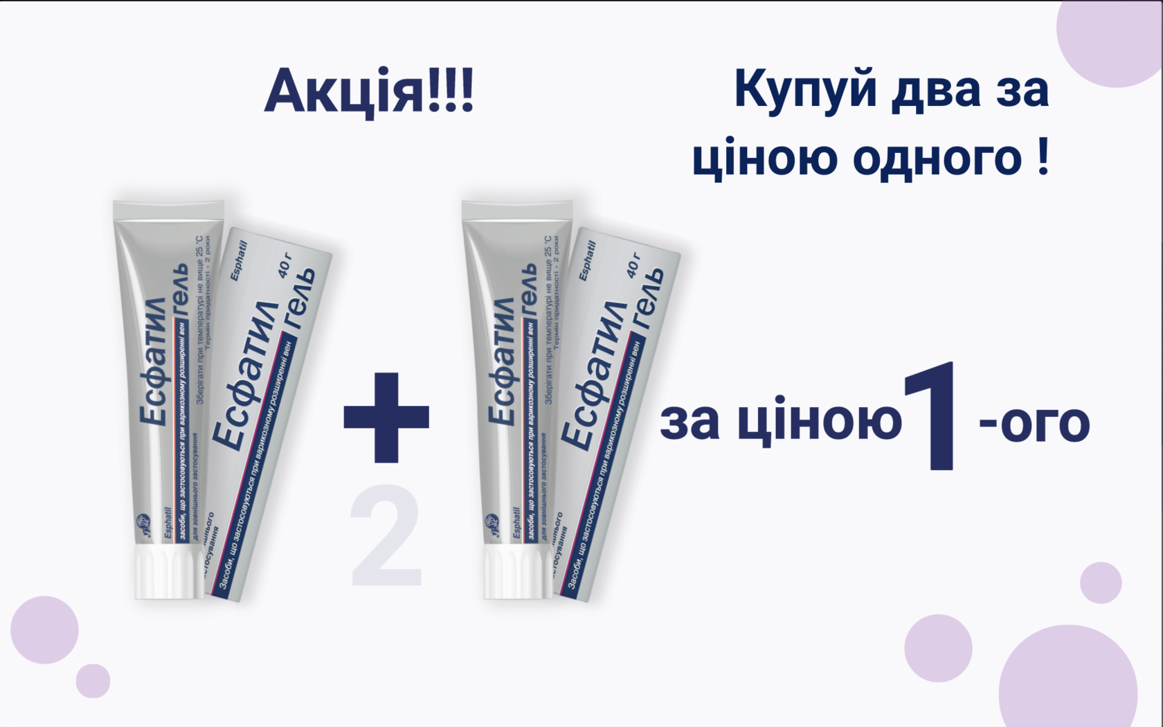 Купуй дві пачки "Есфатил Гелю" у мережі аптек "Ліки Полтавщини" за ціною одної !